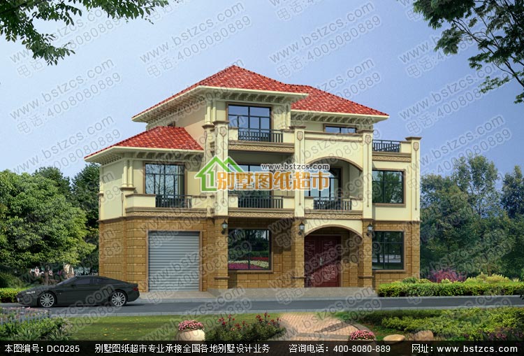 三層帶車庫歐式別墅設(shè)計圖紙_別墅圖紙超市,鼎川建筑