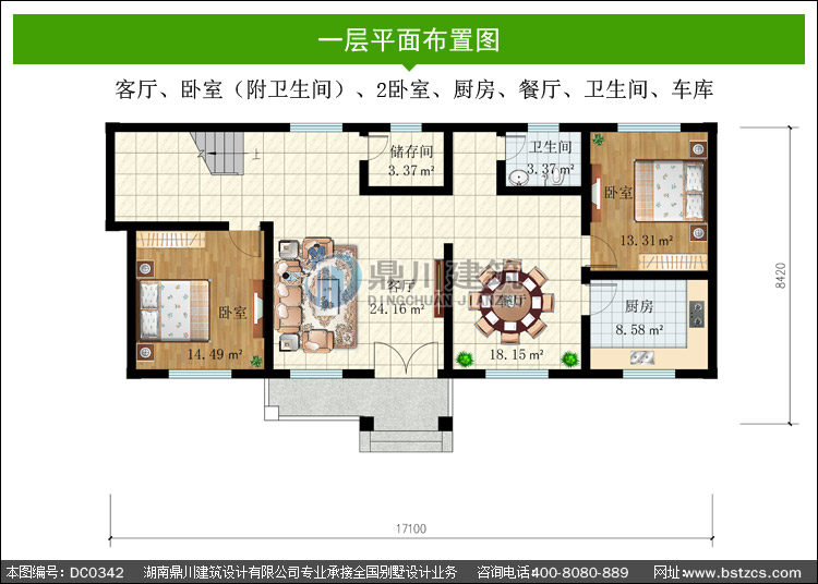 一 層: | 客廳、2臥室、廚房、餐廳、衛(wèi)生間、儲(chǔ)存間 | |||