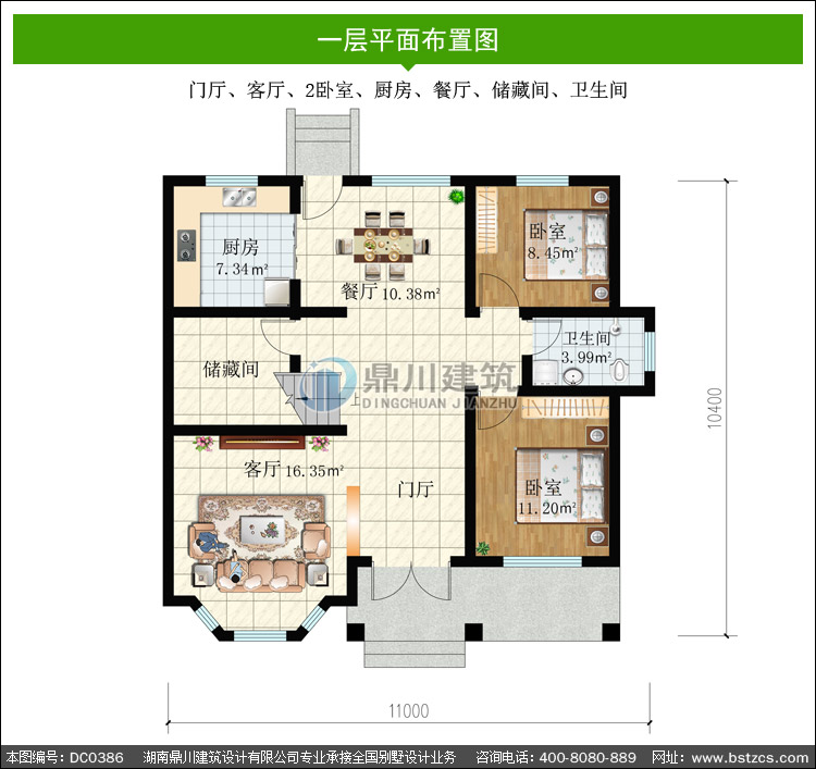 一 層: | 門廳、客廳、2臥室、廚房、餐廳、儲藏間、衛(wèi)生間 | |||