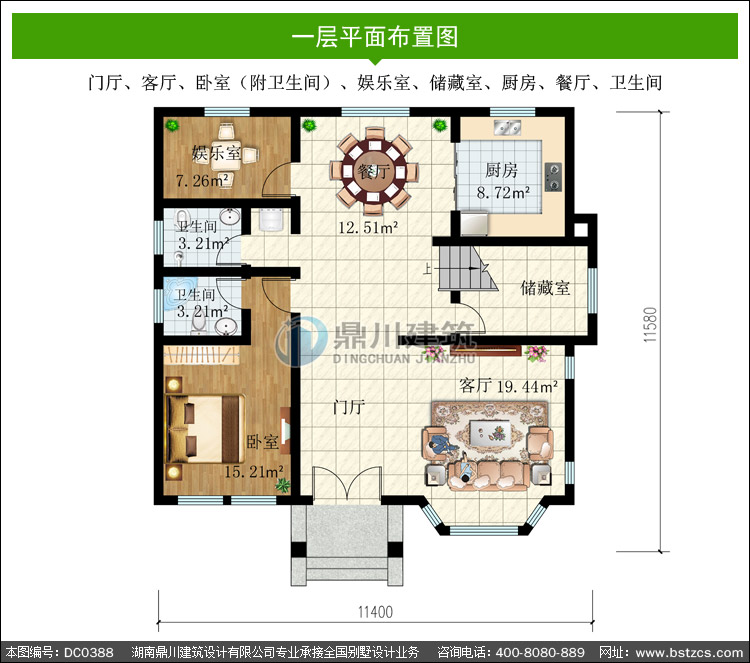 一 層: | 門廳、客廳、臥室(附衛(wèi)生間)、娛樂室、儲(chǔ)藏室、廚房、餐廳、衛(wèi)生間 | |||