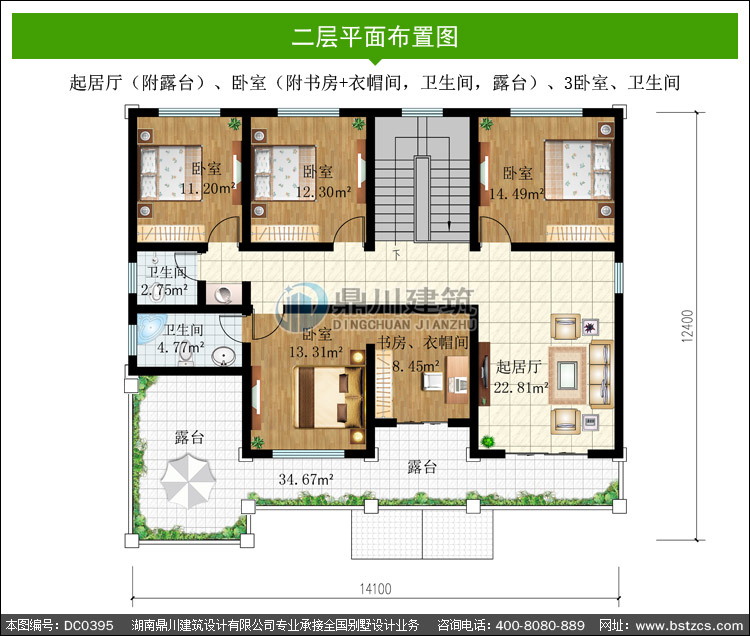 新農村二層帶大露臺別墅設計圖_農村房屋設計圖,鼎川建筑圖紙