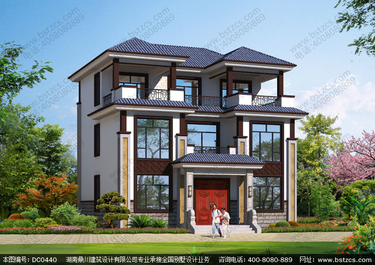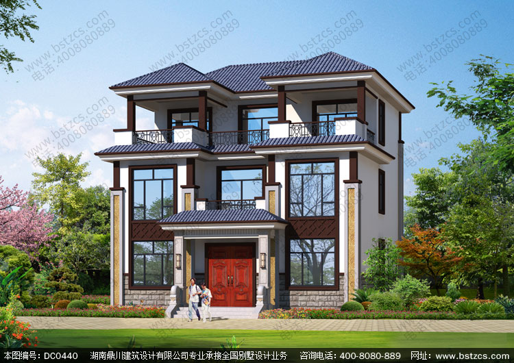 新中式三層帶露臺小別墅設(shè)計圖紙及效果圖_農(nóng)村三層別墅設(shè)計,鼎川建筑