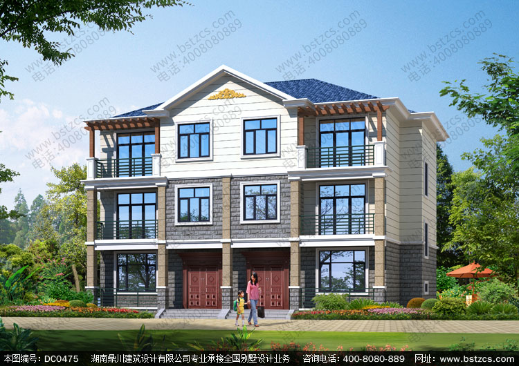 歐式三層帶堂屋雙拼別墅設計圖紙_農村三層雙拼別墅設計,鼎川建