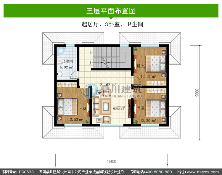 三 層: | 起居廳、3臥室、衛(wèi)生間 |