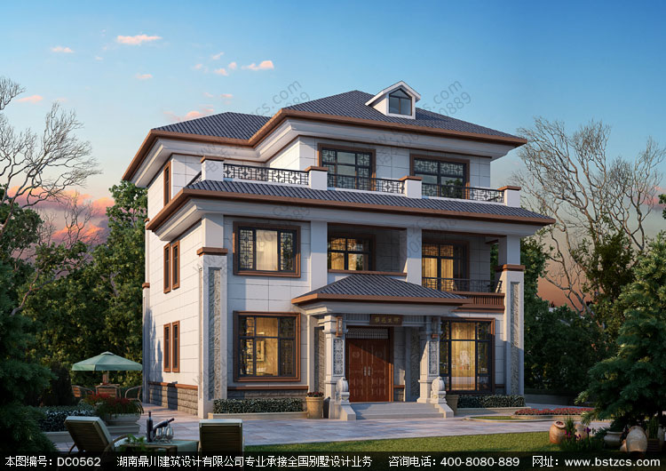 新中式三層帶露臺別墅設計圖紙及效果圖_農村三層別墅設計,鼎川建筑