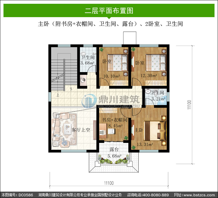 二 層: | 主臥(附書房+衣帽間、衛生間、露臺)、2臥室、衛生間 | |||