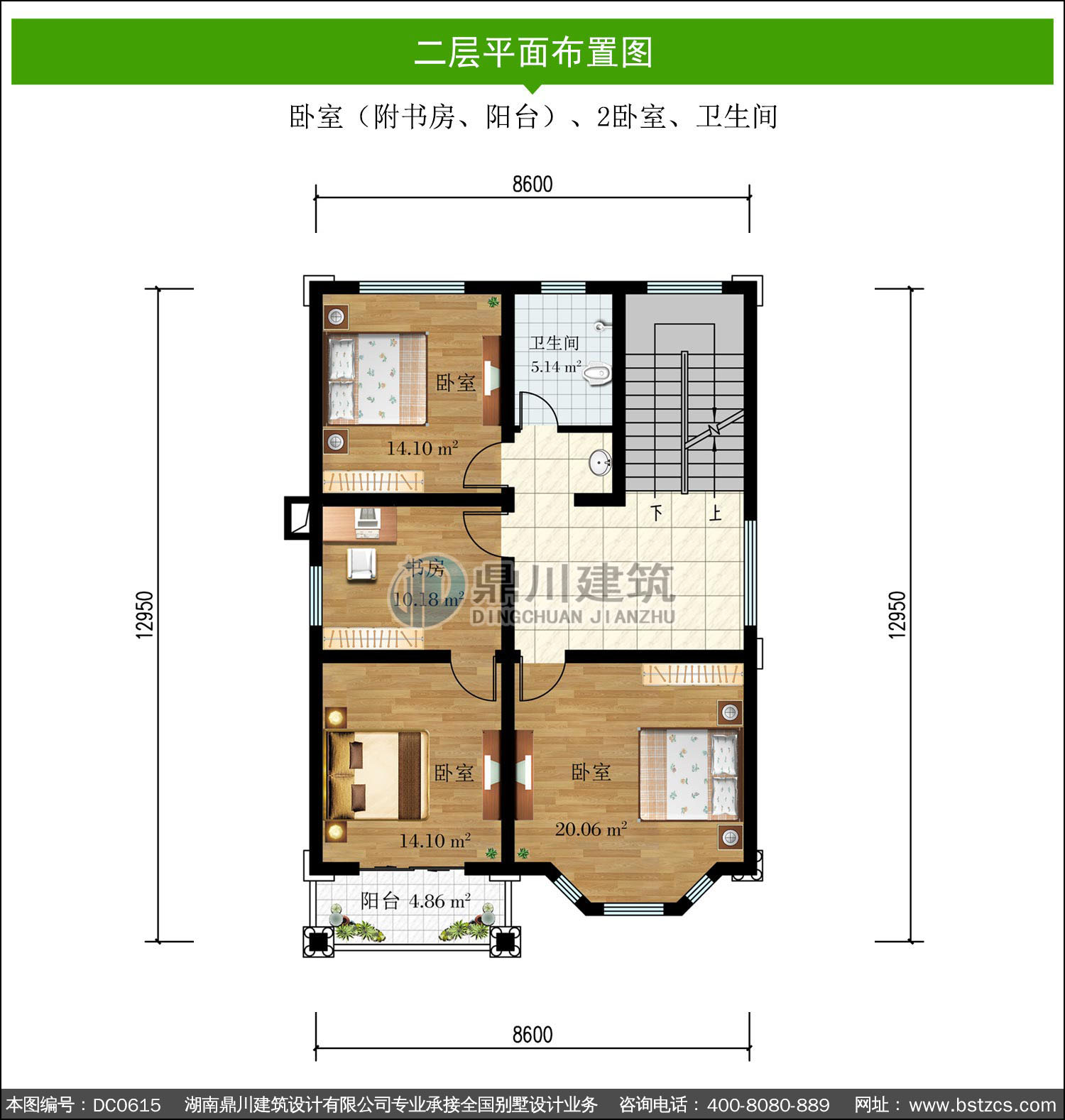 三 層: 臥室(附書房)、臥室、衛生間、露臺