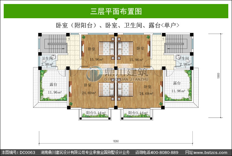 三層平屋頂雙拼別墅效果圖與施工圖_別墅設計圖紙,新農村別墅,農村自建房設計