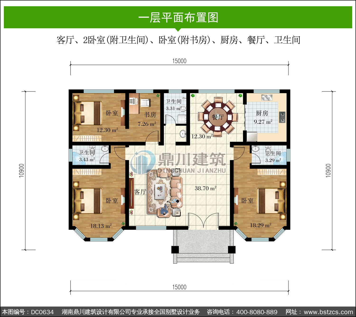 漂亮的歐式一層別墅設計圖紙_農村平房設計圖紙,鼎川建筑