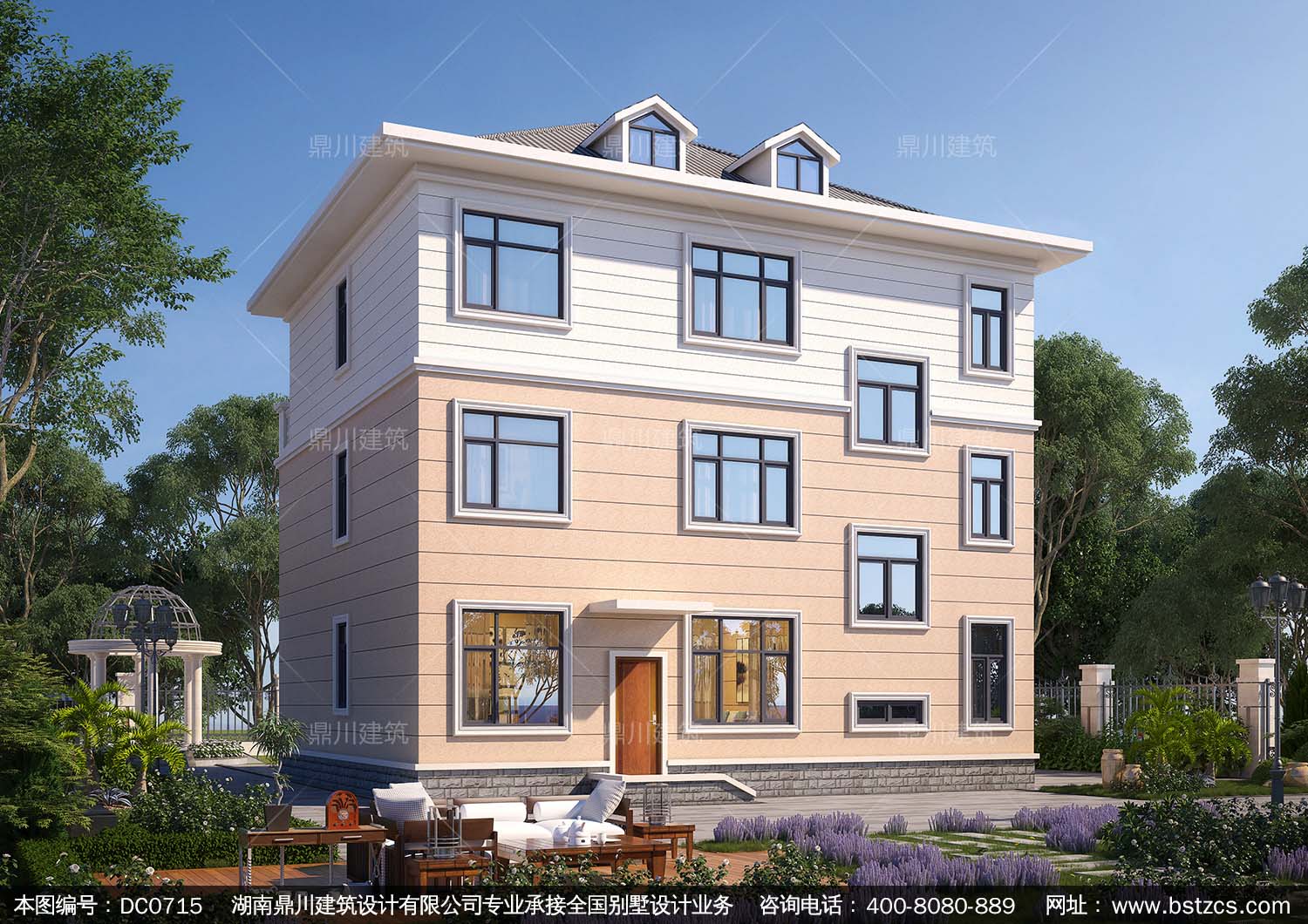 歐式三層帶露臺復式別墅設計施工圖紙及外觀效果圖_新農(nóng)村自建房