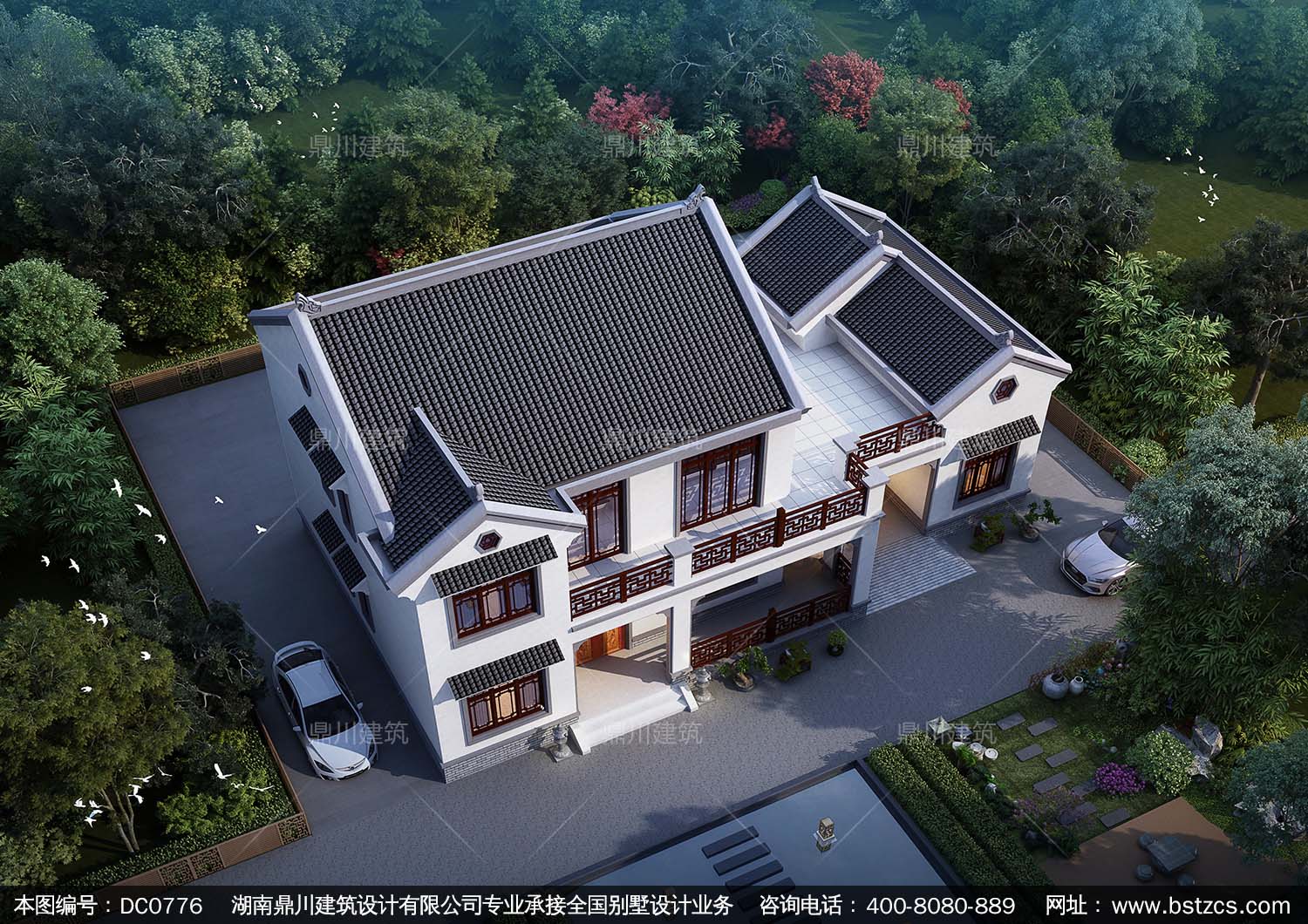 中式二層帶露臺自建房施工圖紙及效果圖_農村別墅設計,鼎川建筑