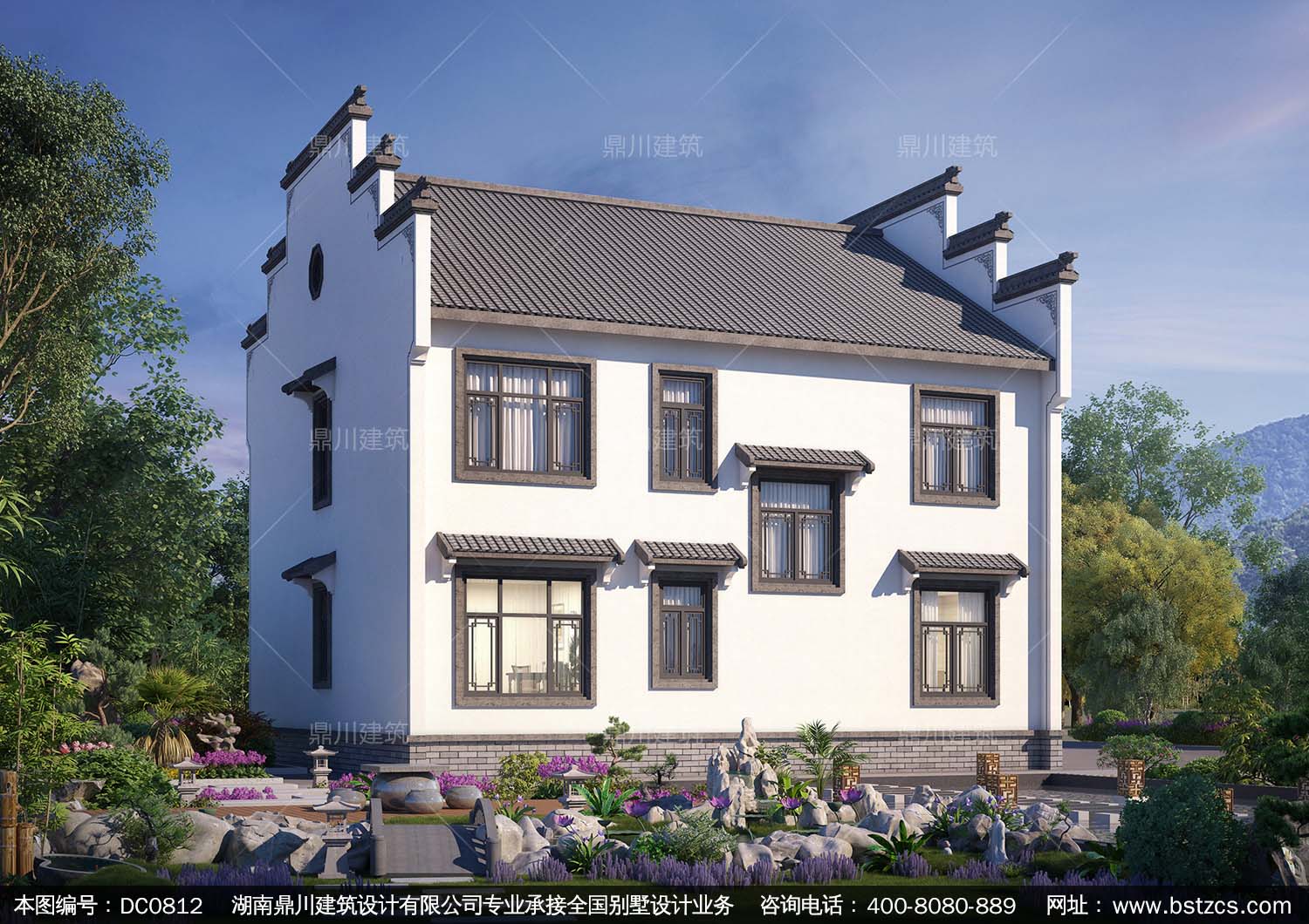 農村二層中式別墅圖紙施工圖及效果圖_自建房屋設計圖紙,鼎川建